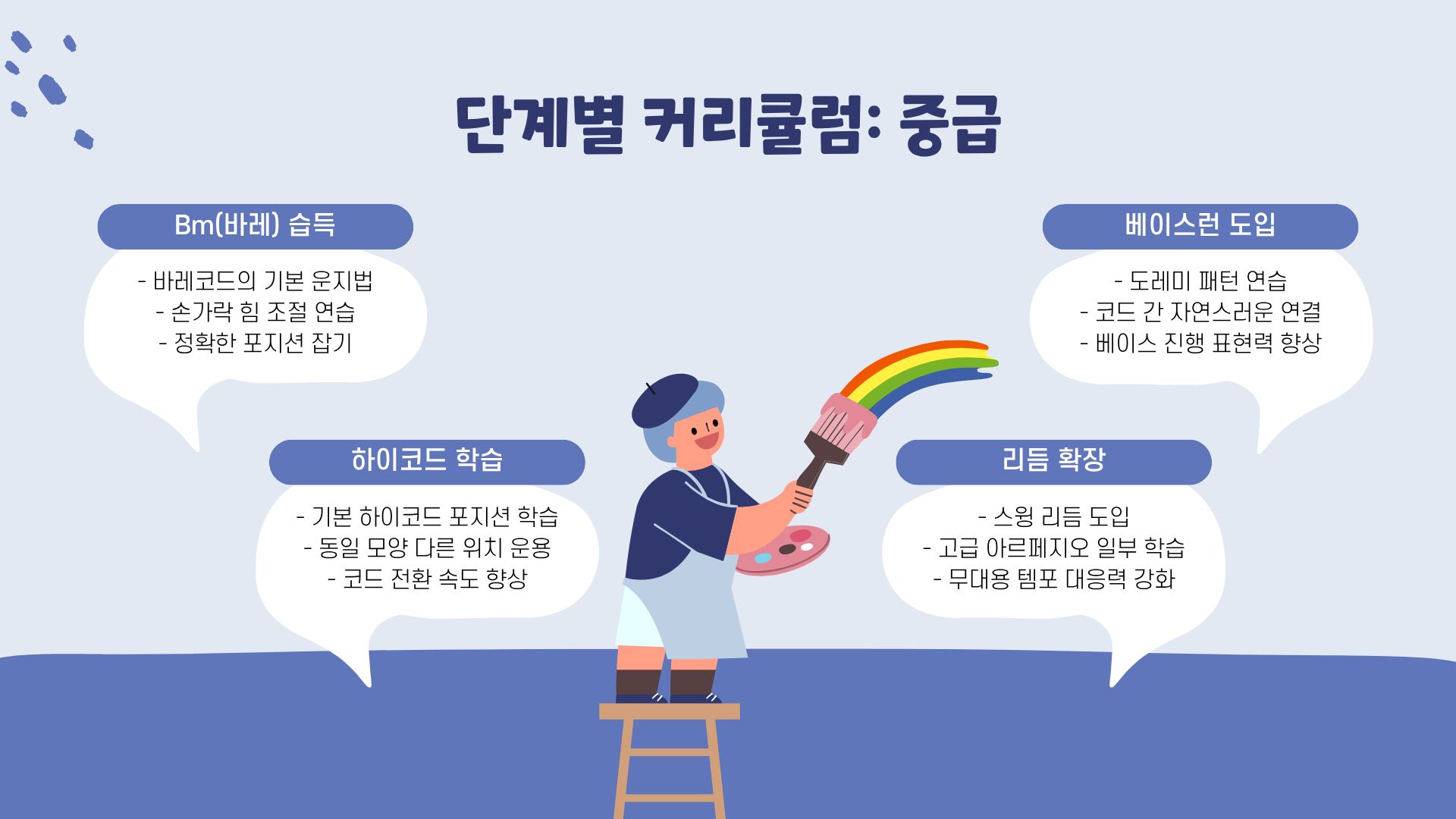 - 성과: 테크닉·표현력 완성도 상승(마스터 과정에서 개인화 훈련)
